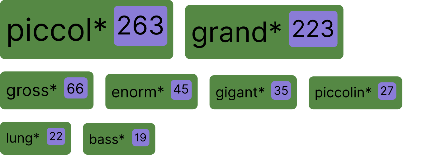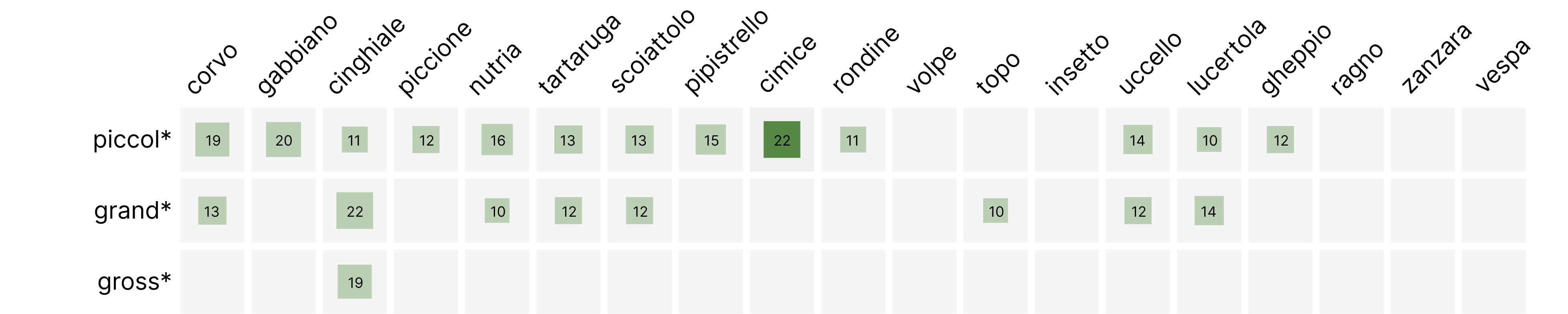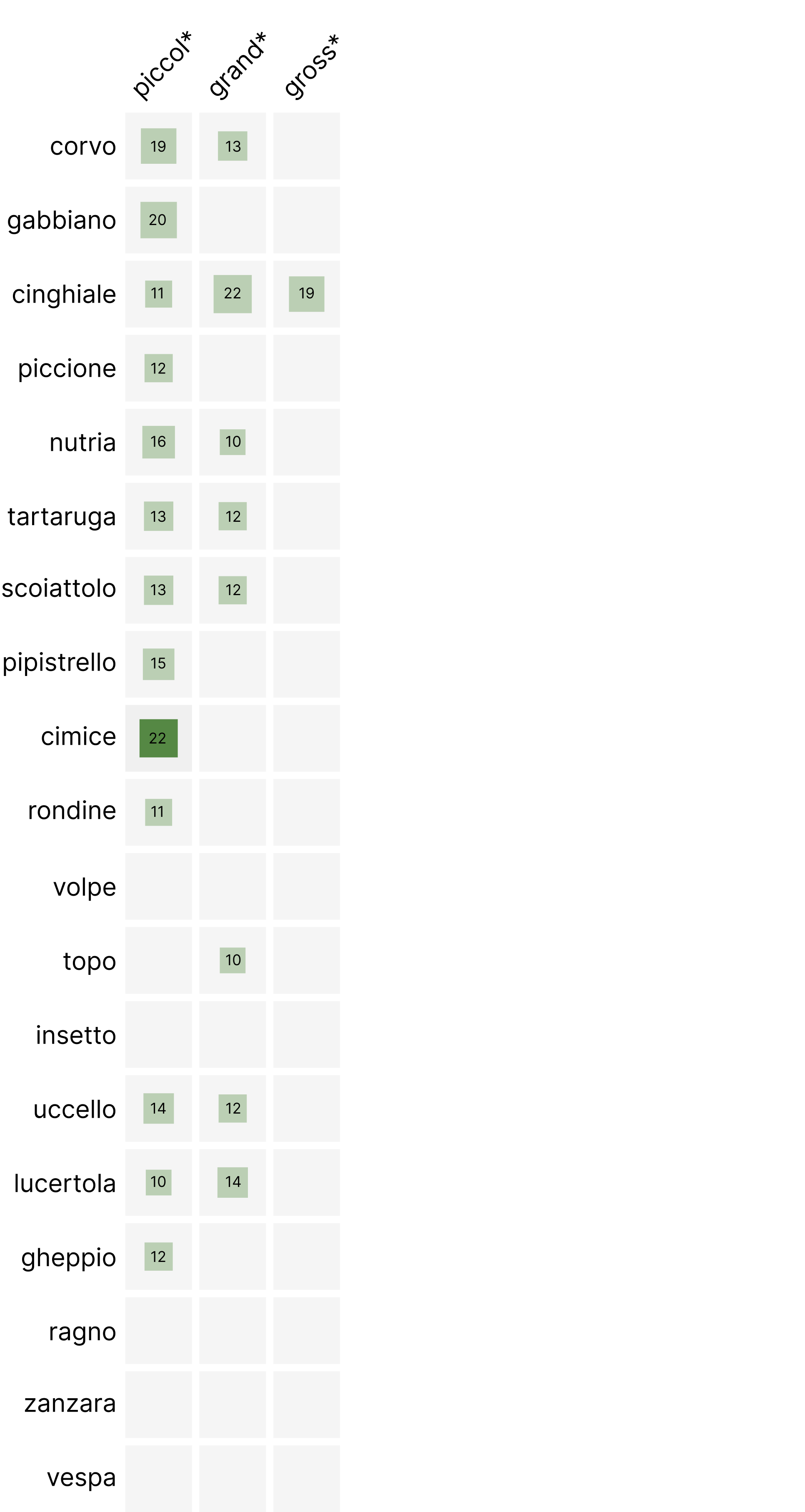 Seguono quelli che descrivono le dimensioni degli animali, piccoli o