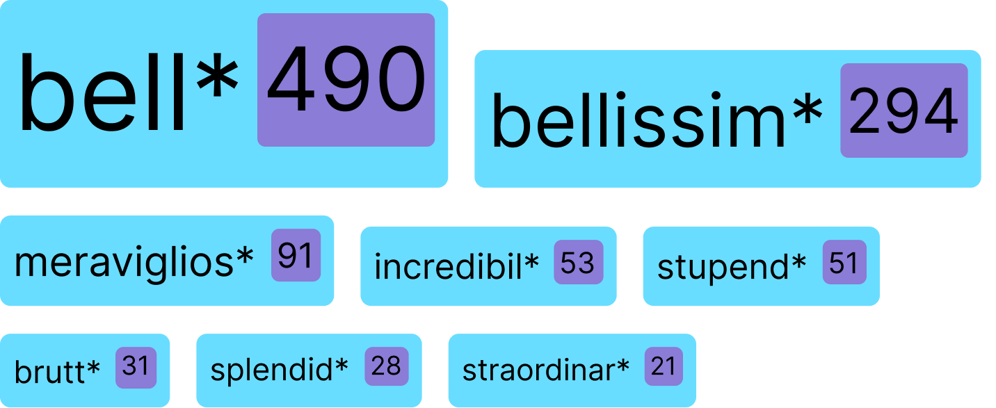 Tra questi, gli aggettivi legati a qualità estetiche positive sono i più